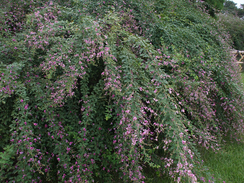 東門に向かってぶらぶら歩く。ちょうど萩まつりの季節で萩の花がすばらしい。いま萩の花のなかでこれを書いているけど、控えめなのに咲き誇るというか、ちょっと不思議な色気です。