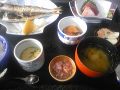 磯華亭の焼き魚定食1700円。魚は鯵とカマスだって。おいしいね。