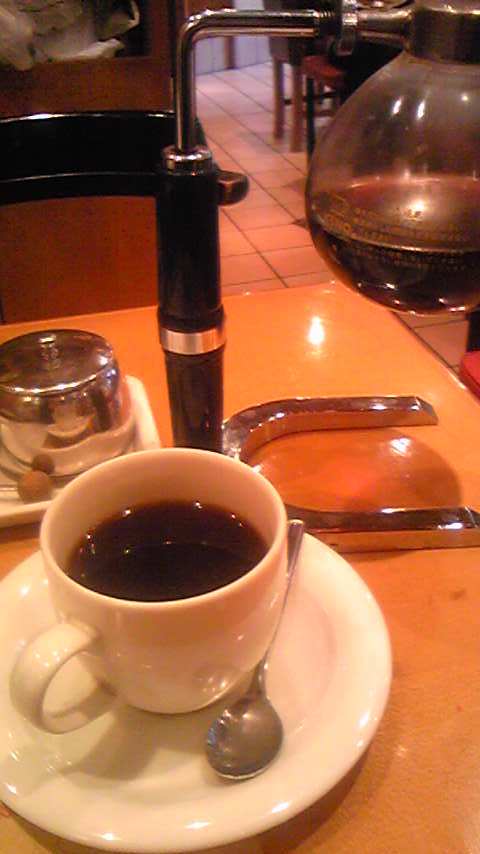 最近多いエスプレッソマシン系じゃなくてサイフォンで出るからストレートでおいしく飲めるし、2杯分あるから長居できてタバコ吸えるし(吸わないけど)、モーニングサービスうまいし、オシャレくさくないし。