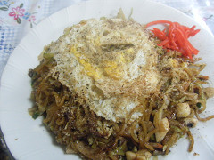 すべての富士宮ヤキソバに共通する特徴は、ラードを使うこと、独特のコシのある麺、肉のしぼりかす、キャベツ、上にかける削り粉らしい。トッピングは紅ショウガが主流。