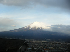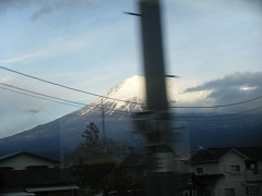 電車の進行方向が変わる関係で、富士山の見える位置が途中で切り替わるのが、右富士、左富士と呼ばれて、鉄オタの間では有名みたい。というわけで、カメラを構えてシャッターチャンスを狙う。