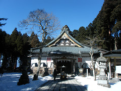 山頂は雪がつもっていて、この雪を踏みしめながら「聞親閣」へ。