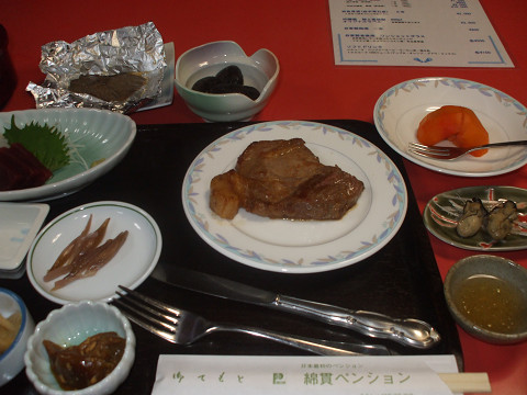 親切なペンションのご主人(マスターとかオーナーとかいうのかもしれないが知らない)に案内され、さっそく夕食。