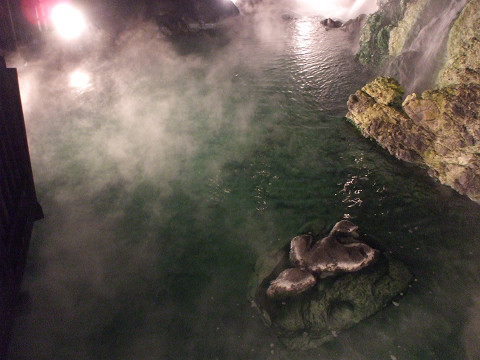 ペンションで無料券をもらったので、まずは「大滝の湯」へ。大きなセンターのようになっていて、人もいっぱい。通常の入場料は800円らしい。女性風呂は内湯も露天も広々していて気持ちよかったー。でも、お湯はやや熱めだからぬるめ派にはきついのかな。