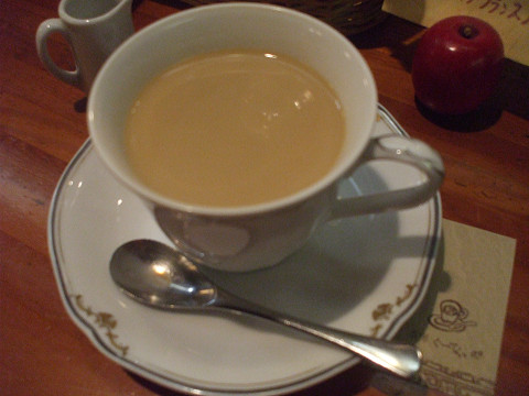 ブレンドを注文。一口目のブラックもおいしいけど、砂糖とミルクを入れてまったり染み渡るかんじもいいね。