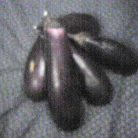 バスでごとごと道の駅とよとみへ移動。ここでナスを収穫するらしい。少し歩いた畑に入り、巨大ナスを一人5本、収穫。好きなの選んでハサミで切るだけなんだが、けっこう楽しい。