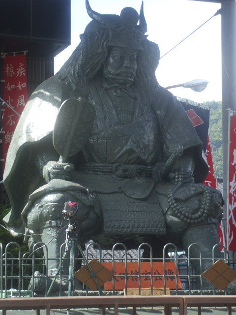 写真は信玄館前にあった武田信玄像。でかいしこわい。