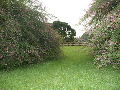 東門に向かってぶらぶら歩く。ちょうど萩まつりの季節で萩の花がすばらしい。いま萩の花のなかでこれを書いているけど、控えめなのに咲き誇るというか、ちょっと不思議な色気です。