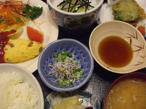 駅の観光案内所のパンフを見て、駅前の納豆料理の店「てんまさ」へ。北口から徒歩2分くらい。案内所の人も「一人でも大丈夫ですよ~いい店ですよ」と言ってくれたけれども、まさにそんなかんじ。