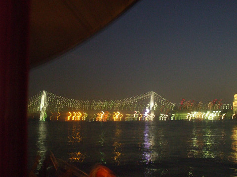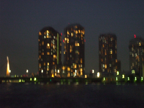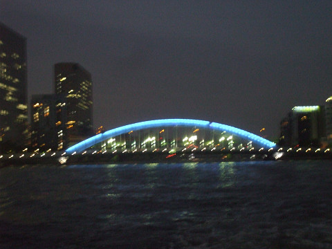 水上バスから見える風景は、築地市場とか首都高とかお台場とか、たぶん東京観光と思えばおもしろいんだろうけれど、あまりにも見慣れていて何とも…。でもだんだん日が暮れてライトアップされた夜景はそれなりにキレイで、最後にシメのレインボーブリッジを回ったときはけっこう感動でした。