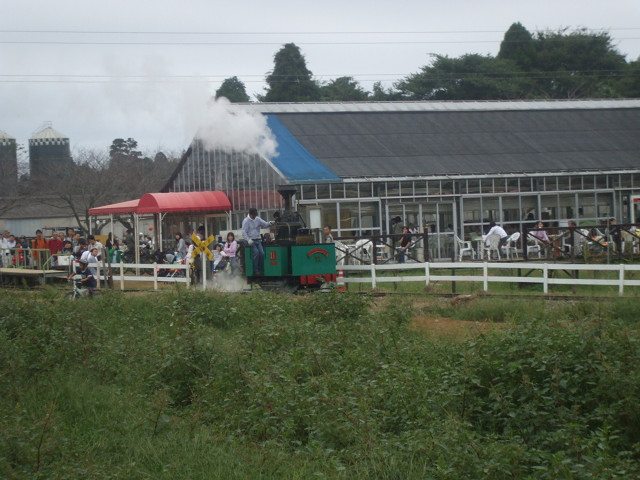 ゆめ牧場には「SLまきば線」というのがあって、普段はトロッコ列車が走っているんだけれども、年に何回か、羅須地人鉄道協会というたぶん鉄オタの人たちが、本物のSLを走らせているらしい。