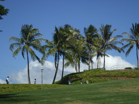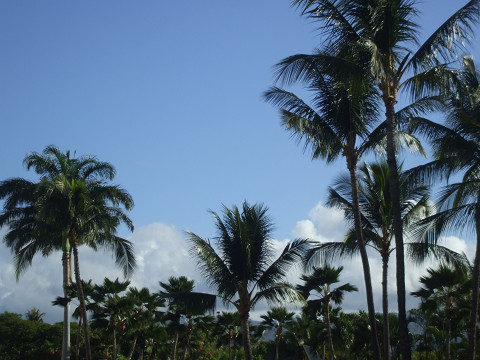 ホノルル空港を出たあたりからもう青空とヤシの木。