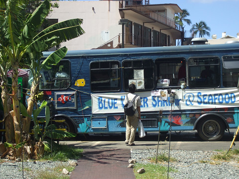 地元の魚介なんかをバスで調理して食べさせてくれるらしい。