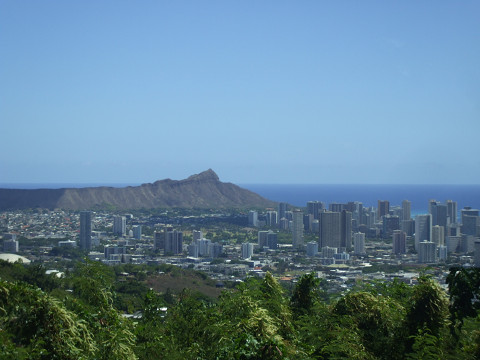 中央はタンタラスの丘からの展望。ちなみにこの丘、下のほうは保護政策で$99で99年間住めるとかいうハワイアン住宅だけど、夜はあまり治安がよくないので個人観光は注意したほうがいいらしい。