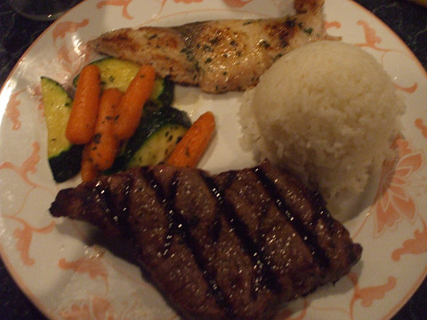 夕飯は歩いて5~10分くらいのところにあるレストラン、スーパーシェフ。ステーキと地元のシーフードのプレート、$17弱。ハワイの定番カクテル、チチ、$4.5。夫は同じ価格でステーキとロブスターのプレートとピニャコラーダを頼んでました。ステーキ、燒き加減もよくて柔らかくてジューシーで素晴らしい!
