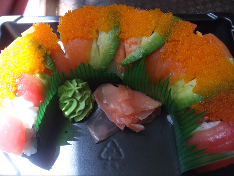 さらにしつこくフードコートでレインボーロール($8)なんて食べてみる。レインボーといえばハワイは車のナンバープレートにも虹がついてるんだとか。