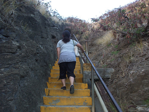 舗装された道は途中で切れてあとは石だらけの登り坂が続き、最後は心臓破りの階段が延々。
