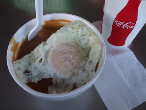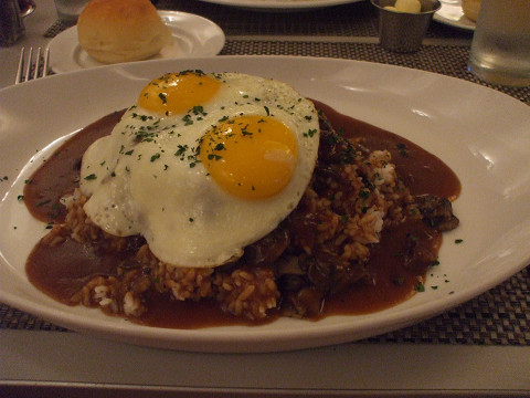 さらにオプションでレインボードライブインに立ち寄り、ロコモコの朝食。日本と違う印象はどっぷりかかったグレービーソース。でもそれがまたおいしかったです。