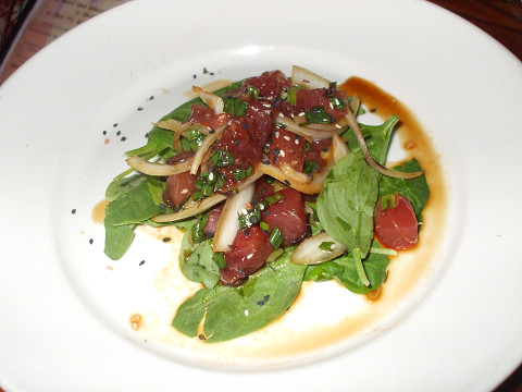 大学時代、後輩の誕生日にイヤガラセで買った喜多嶋隆のブラッディ・マリーシリーズというのがあって、これが実はなかなかおもしろかったために全巻読み込んでしまったのだけれど、そのなかに恋人とハワイのビーチか何かでマヒマヒと呼ばれるシイラをフライにしたのとアヒポキというマグロをあえたのをつまみながらデートをするシーンがあって、それ以来、ずっとそのマヒマヒとアヒポキが食べたかったので、こんなところで夢が叶って幸せです。