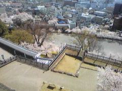 特急に乗ったおかげで1時間弱、余裕ができたんだが、駅弁を食べたあとほうとうをかき込むのも人間としてどうかと思い(小海線の駅弁も食べたいしね!)、観光案内で「桜がキレイですよ」とすすめられた舞鶴城公園へ。