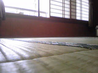 部屋の畳でごろごろ。