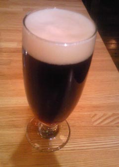つばめグリルでビールとなにやらコーンビーフを使った前菜の炒め物。